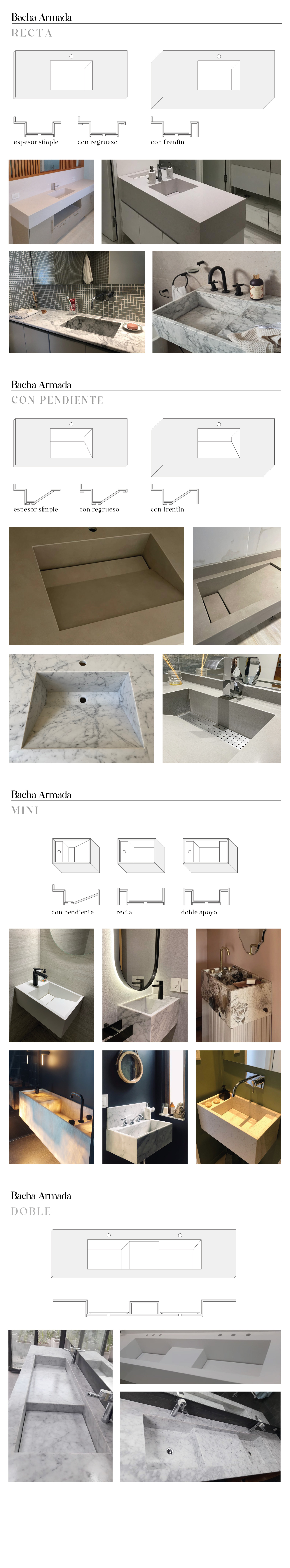 A continuación vas a poder ver los detalles constructivos de las distintas tipologías de bachas armadas junto a imágenes de trabajos realizados por nosotros.